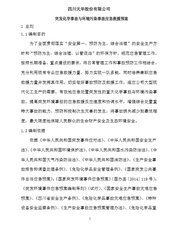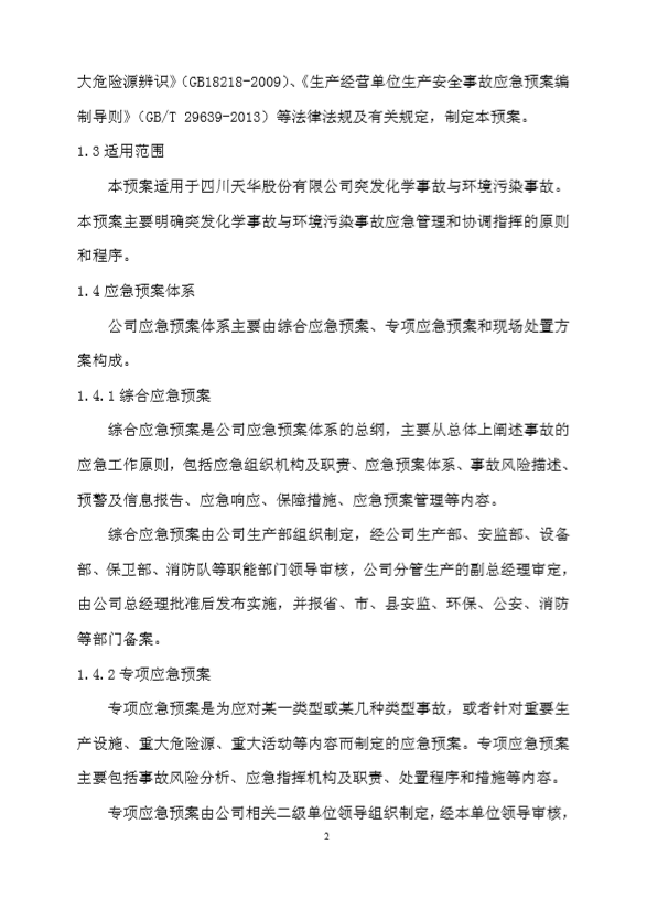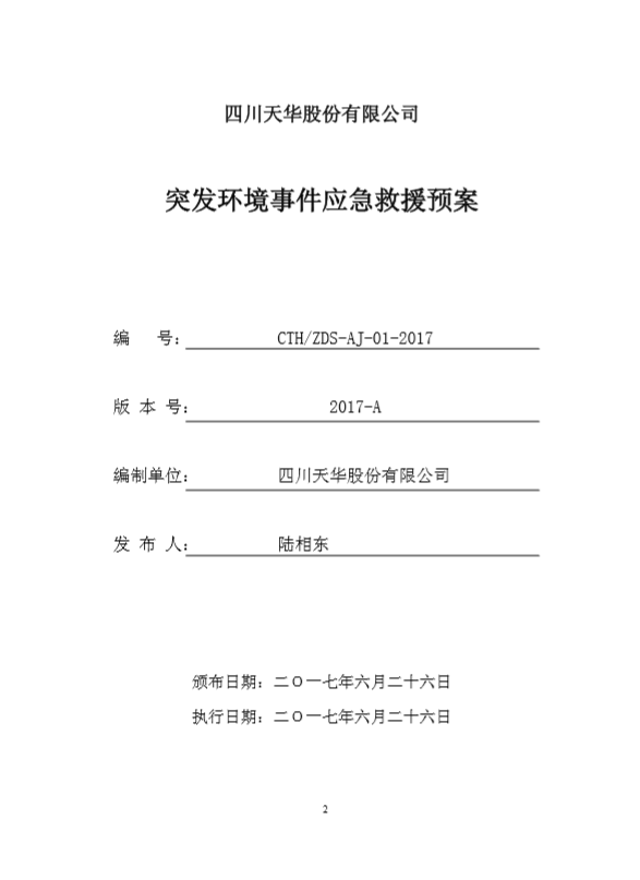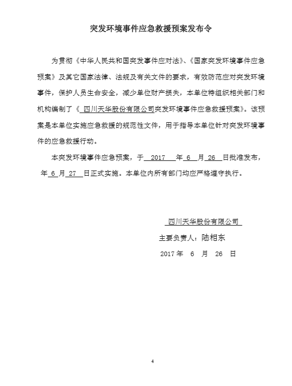 四川天華股份有限公司突發(fā)環(huán)境事件應(yīng)急預(yù)案